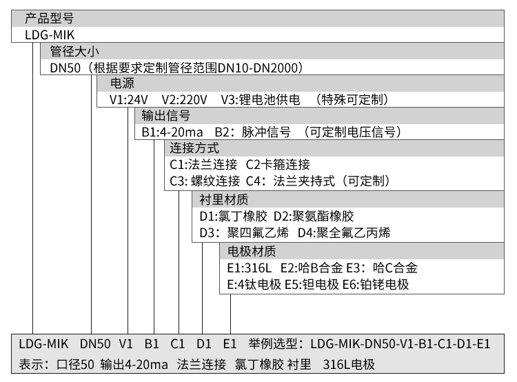 产品描述Product Description LDG-MIK升级款电磁流量计是根据法拉第电磁感应定律进行流量测试的流量计。电磁流量计的优点是压损极小,可测流量范围大。最大流量与最小流量的比值一般为10:1以上,适用的工业管径范围宽,最大可达3m,输出信号和被测流量呈线性,精确度较高,可测量电导率≥5μs/cm的酸、碱盐溶液、水、污水、腐蚀性液体以及泥浆、矿浆、纸浆等流体流量。 电磁流量计广泛应用于石油化工、钢铁冶金、给水排水、水利灌溉、水处理、污水处理站(环保污水控制、化工污水、电镀污水)、造纸(纸浆)、泥浆、医药、食品等工农业的生产公司过程流量测量和控制。