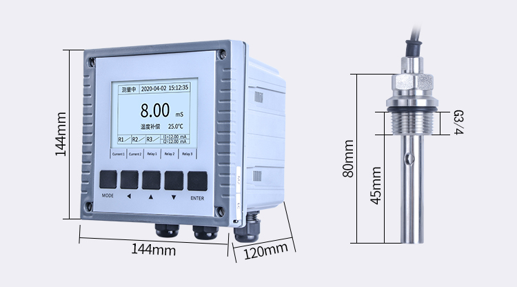 MIK-EC8.0型工业电导率仪表,可对各种工业用水的电导率(TDS)值进行连续测量和控制,本装置广泛应用于科学实验装备、化工、制药、环保、冶金、造纸、食品、饮料及供水等行业。