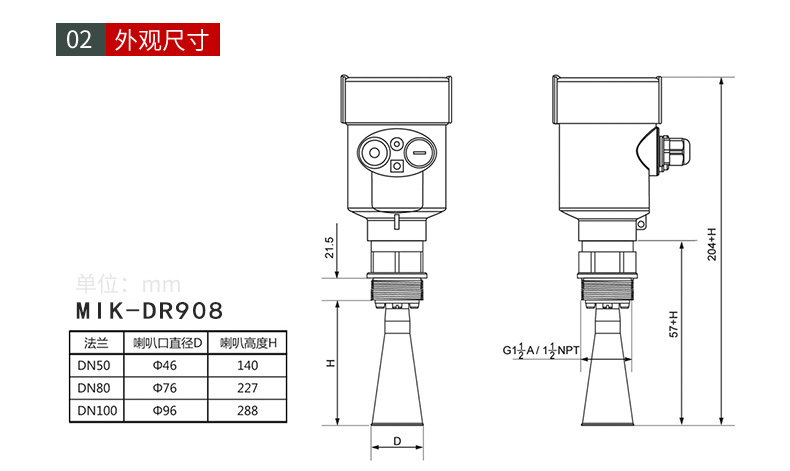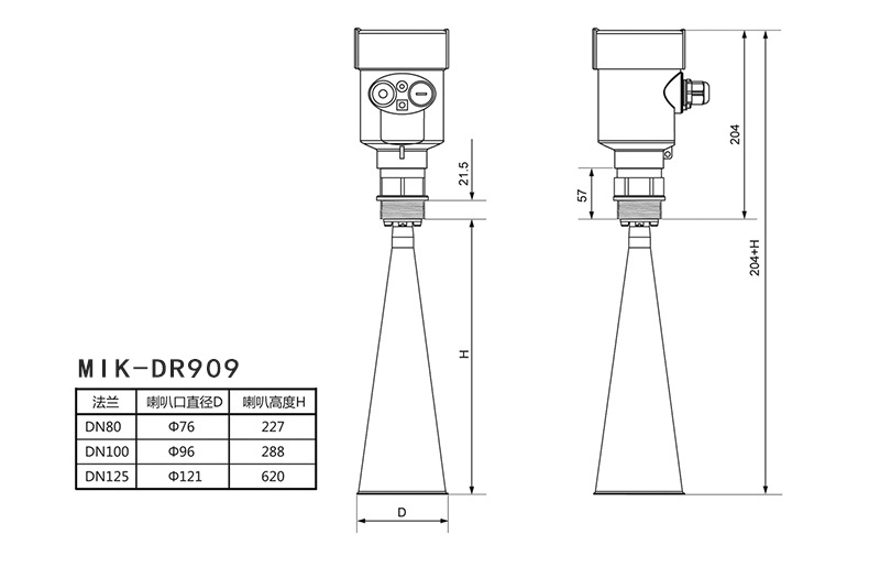 MIK-RD908/909雷达液位计天线发射极窄的微波脉冲,这个脉冲以光速在空间传播,遇到被测介质表面,其部分能量被反射回来,被同一天线接收。发射脉冲与接收脉冲的时间间隔与天线到被测介质表面的距离成正比。由于电磁波的传播速度极高,发射脉冲与接收脉冲的时间间隔很小(纳秒量级)很难确认,MIK系列908雷达液位计采用一种特殊的解调技术,可以准确识别发射脉冲与接收脉冲的时间间隔,从而进一步计算出天线到被测介质表面的距离。