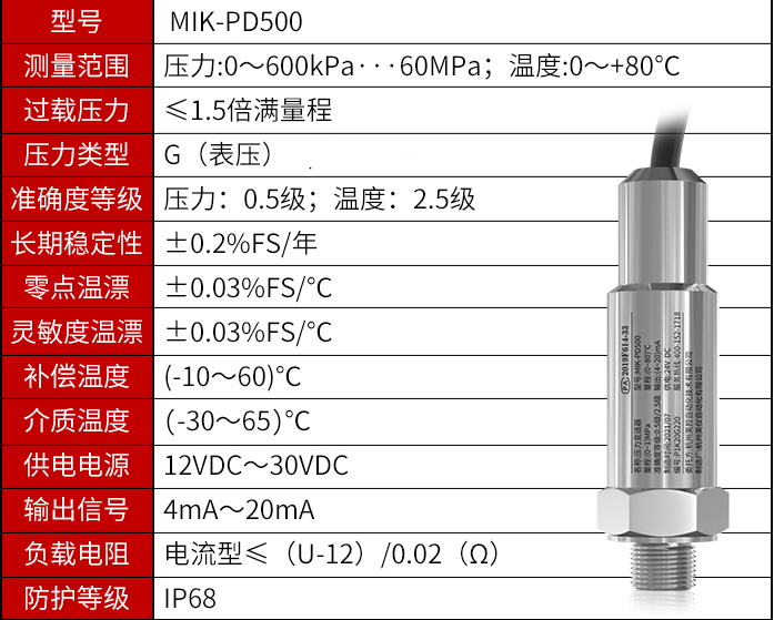 MIK-PD500 温度压力一体式变送器 即可测温也可测压