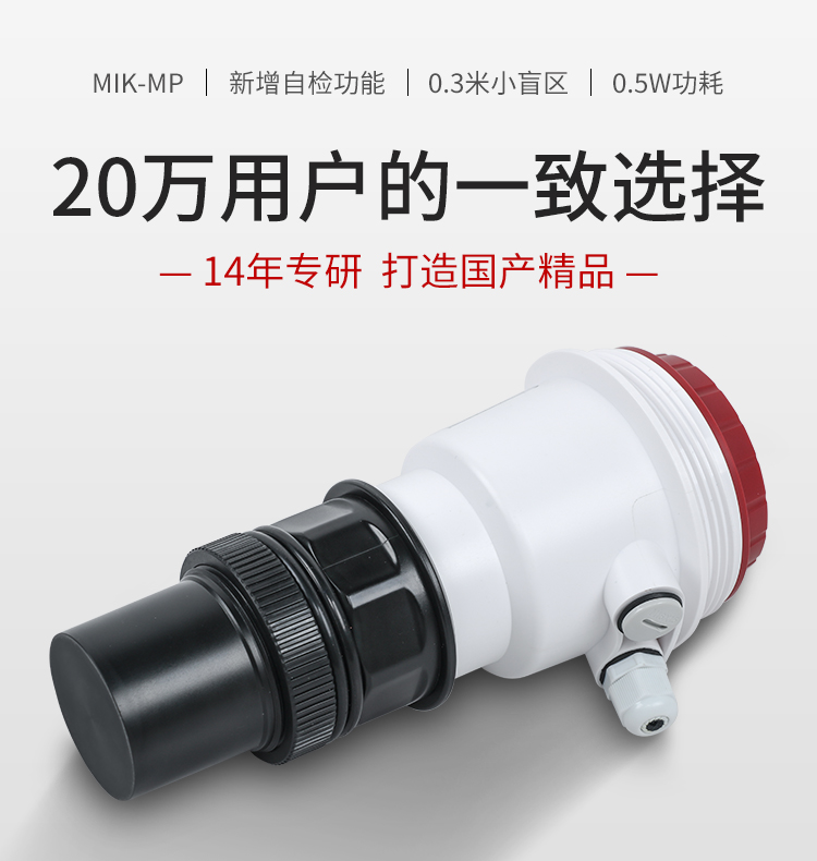 MIK-MP超声波液位计利用发射超声波经物位或液位,反射后所需要的时间来计算距离。因其不接触介质,安装维修方便等性能在如今的工业现场应用越来越多。可广泛应用于各种液体和固体物料高度的测量,特别是在某些卫生型要求高的现场有着不可取代的优势。