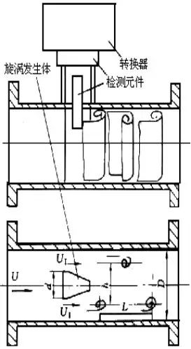 当一稳定的流体流经有一定长度的直管道时,撞击沉浸在流体中的非线性柱体,在流体的下游会产生漩涡(即卡门漩涡)。当流体的雷诺数(Re)在一定的范围内,漩涡的发生规律是稳定可靠的,漩涡发生的频率F由公式:F=(St?*?V)/d?确定
