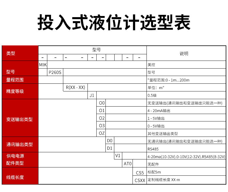 MIK-P260S 全新双重防护型投入式液位计0-200M可选