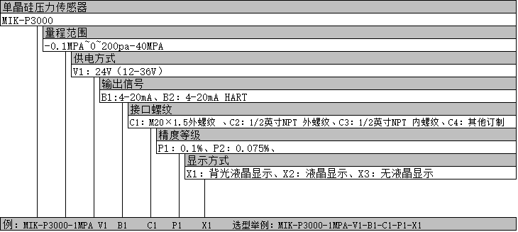 MIK-P3000单晶硅压力/差压变送器(Monocrystalline Silicon Pressure Transmitter) 用于测量液体、气体或蒸汽的液位、密度、压力,然后将其转变成4-20mA HART电流信号输出,也可与BST9900、HART375或BST Modem相互通信,通过他们进行参数设定、过程控制。