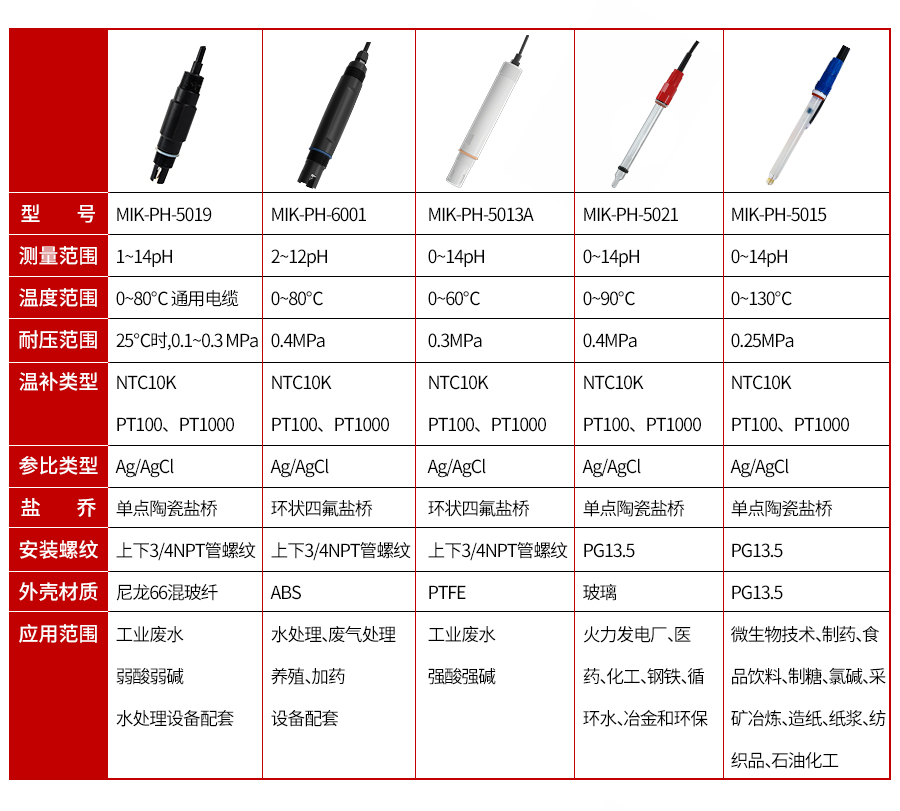 MIK-PH-5019塑壳电极升级款,电极塑壳采用PON材质,可耐80℃的高温,并能耐强酸强碱腐蚀,可根据客户需要加装温补型号PT100/PT1000/NTC10K等,电极响应快、稳定性好。